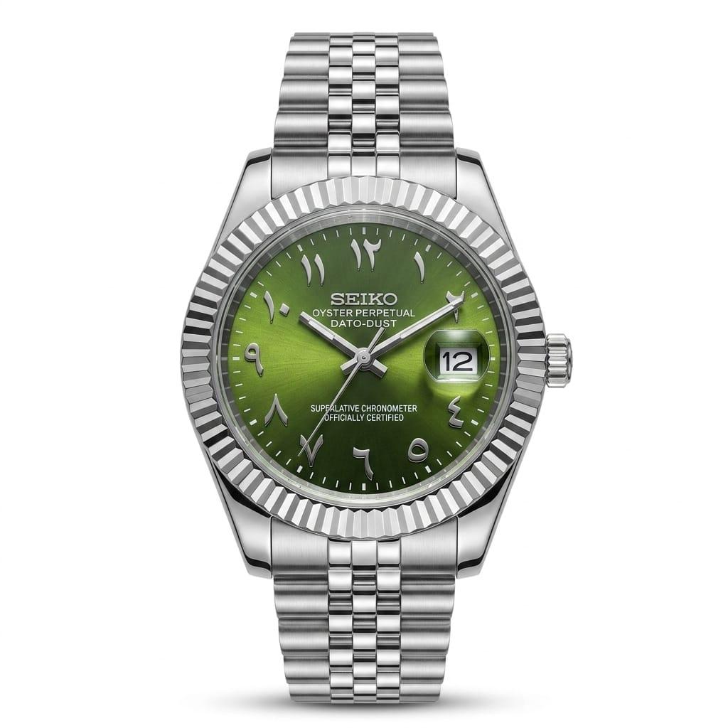 Seiko Oyster Perpetual Arabic Datejust Style | Green Sunburst Dial, Silver Jubilee Watch